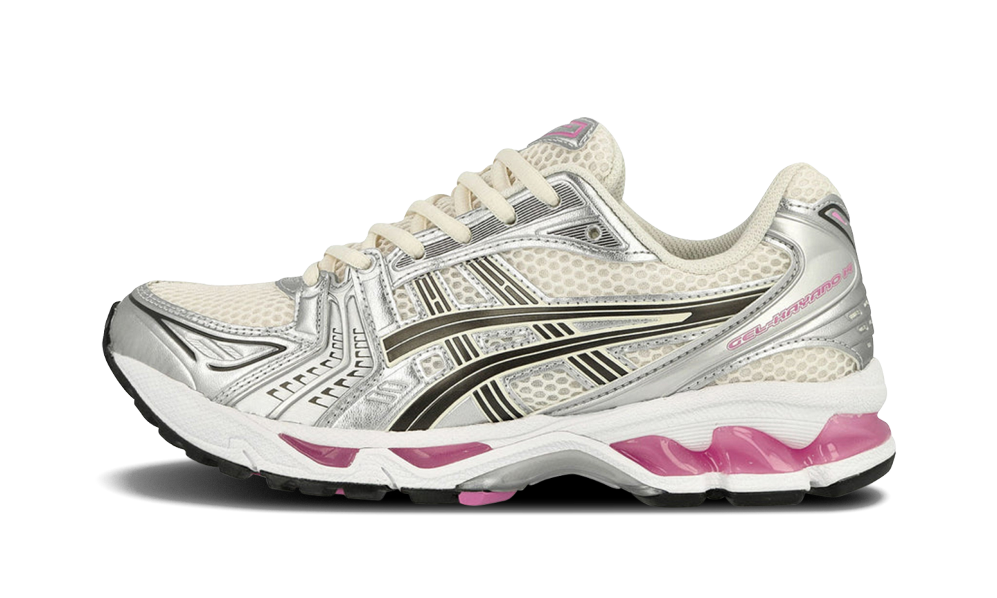 Step into a sweet blend of style and comfort with the GEL-KAYANO 14 "Cream Sweet Pink." These sneakers offer a delightful twist on a classic silhouette, perfect for adding a touch of feminine flair to your everyday look. The "Cream Sweet Pink" colorway combines soft, creamy tones with playful pink accents, creating an eye-catching yet versatile design. Experience the renowned cushioning and support of the GEL-KAYANO series, ensuring all-day comfort and confidence.