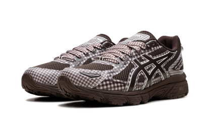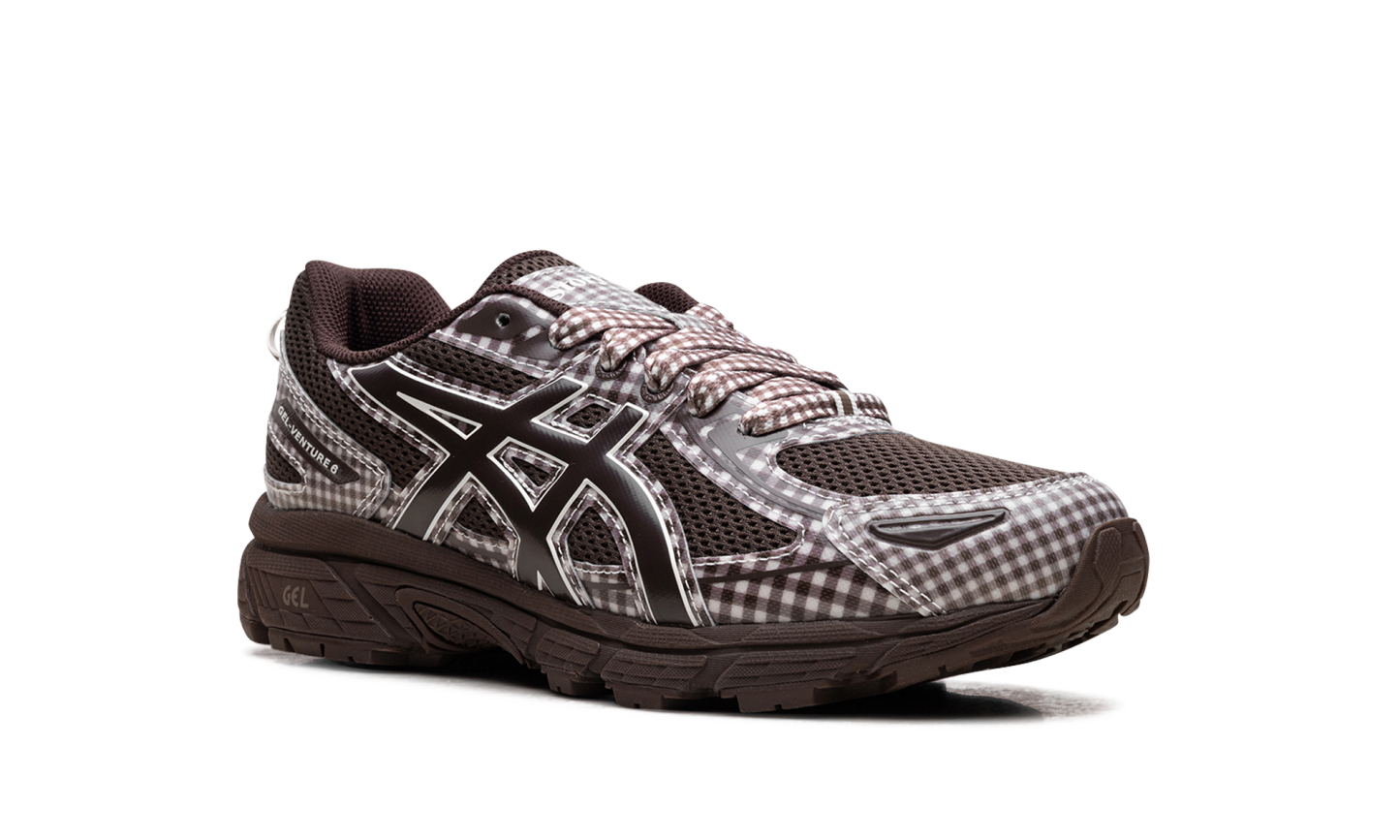 Unearth the beauty of slow-made fashion with the GEL-Venture 6 Story mfg. "Reddish Brown." This collaboration reworks the trail shoe with Story mfg.'s ethical, handcrafted aesthetic, featuring a durable mesh upper overlaid with folksy gingham check fabric and rich reddish-brown tones. Built for the urban explorer, it includes rearfoot GEL™ technology for superior shock absorption and a specialized trail-specific outsole for confident, cushioned grip on any surface.